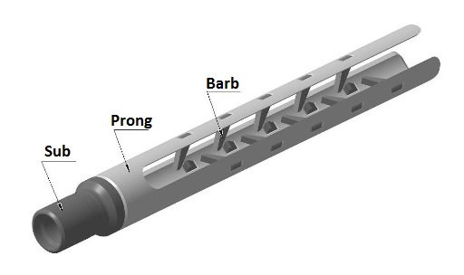Barbs arranged along prongs and descending in size ensure engagement of tightly tangled wireline. Increased number of barbs allows for higher loads during retrieval. The bottom end of the prongs is tapered to enter tightly tangled wireline.